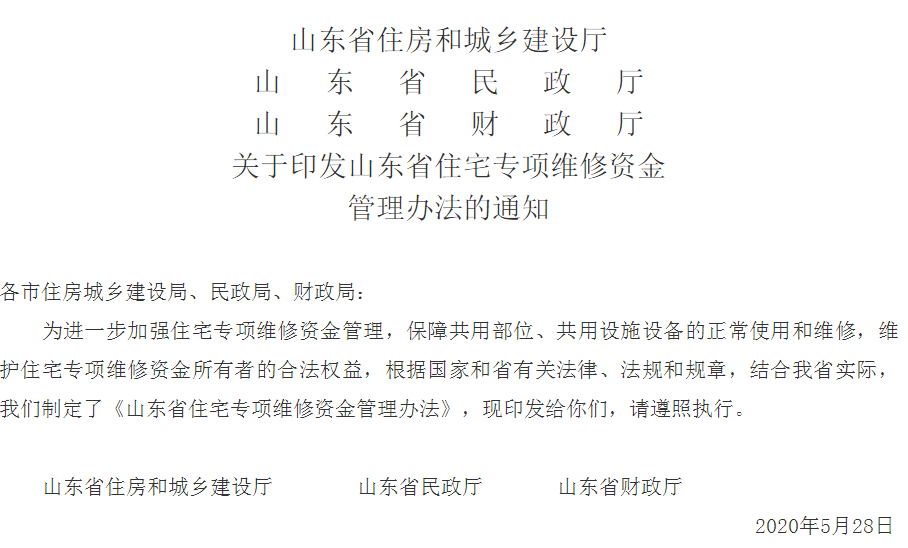 條 為了加強對住宅專項維修資金(以下簡稱維修資金)的管理,保障住宅共用部位、共用設施設備的正常使用和維修,維護維修資金所有者的合法權(quán)益,根據(jù)《中華人民共和國物權(quán)法》《物業(yè)管理條例》《山東省物業(yè)管理條例》《住宅專項維修資金管理辦法》等法律、法規(guī)和規(guī)章的規(guī)定,結(jié)合本省實際,制定本辦法。