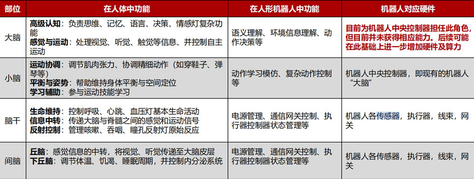 依照低層次感知到G層次感知逐個來看,人腦的間腦與腦干在機器人中對應的主要是