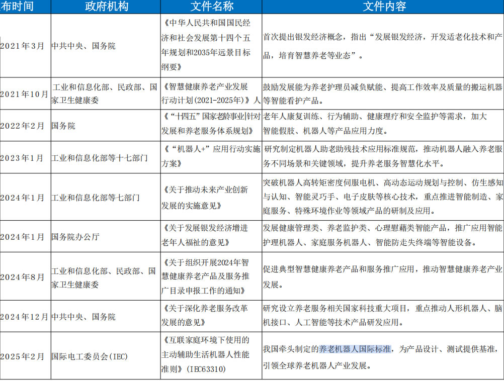 基于社會老齡化和安全戰(zhàn)略考量,21年來黨和密集出臺多項(xiàng)養(yǎng)老機(jī)器人D層政策文件,彰顯對老齡化工作的