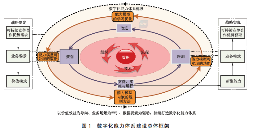 策劃(Plan):企業(yè)應(yīng)綜合研判可持續(xù)競爭合作優(yōu)勢、業(yè)務(wù)場景、價(jià)值模式等發(fā)展戰(zhàn)略相關(guān)關(guān)鍵需求, 圍繞價(jià)值體系的優(yōu)化、創(chuàng)新和重構(gòu),以業(yè)務(wù)場景為牽引,識別擬打造的數(shù)字化能力(體系),并從能力模型 可處理的數(shù)據(jù)、能力模型內(nèi)嵌的規(guī)則方法、能力模型可實(shí)現(xiàn)的功能、能力模型的學(xué)習(xí)優(yōu)化等方面進(jìn)一步 明確相關(guān)數(shù)字化能力(體系)建設(shè)的具體需求。在此基礎(chǔ)上,根據(jù)業(yè)務(wù)場景和相關(guān)數(shù)字化能力(體系)建 設(shè)的需求,策劃形成涵蓋數(shù)據(jù)、技術(shù)、流程、組織等四要素的數(shù)字化能力(體系)建設(shè)系統(tǒng)性解決方案。
