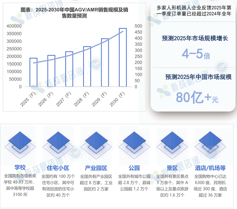 展望未來, 智能移動機器人正從 u工具屬性" 向 "生態(tài)節(jié)點n 進化, 隨著 5G-A、數(shù)字孿生等技術(shù)的落地, 其在智能制造、 智慧城市中的價值將被重新定義。 初步預(yù)測, 2025年ZG智能移動機器人市場