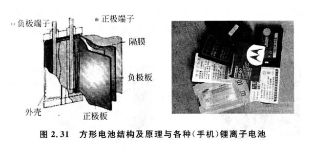 鋰電池是指電化學(xué)體系中含有鋰(包括金屬鋰、鋰合金、鋰離子、鋰聚合物),由鋰金 屬或鋰合金為負(fù)極材料、使用非水電解質(zhì)溶液的電池。鋰電池大致分為鋰金屬電池和鋰 離子電池兩類。鋰金屬電池內(nèi)含金屬態(tài)鋰,它通常是不可充電的。鋰離子電池不含有金 屬態(tài)鋰,它可以充電。Z早出現(xiàn)的鋰電池來自于偉大的發(fā)明家愛迪生,他使用了反應(yīng) Li+MnO₂=LiMnO₂ 。 該反應(yīng)為氧化還原反應(yīng)和放電。由于鋰金屬的化學(xué)特性非; 潑,使得鋰金屬的加工和保存及使用對環(huán)境要求非常高,所以鋰電池長期沒有得到廣泛 應(yīng)用。但是,鋰電池現(xiàn)在已經(jīng)成為了主流,如圖2.31所示。鋰離子電池中因?yàn)椴缓兄?金屬鎘,與鎳鎘電池相比較,它可以大大減少對環(huán)境的污染。