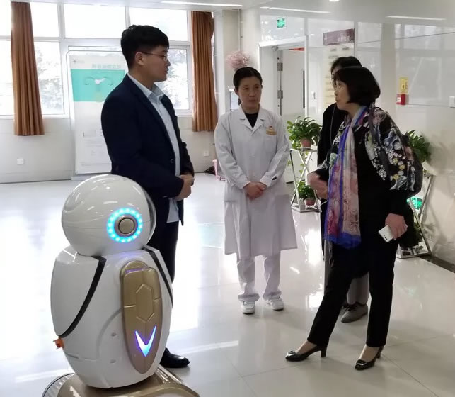 導(dǎo)醫(yī)問診機(jī)器人開發(fā)初衷是解決門診導(dǎo) 醫(yī)人數(shù)較少、重復(fù)問答較多的現(xiàn)實情況。在醫(yī)院業(yè)務(wù)G峰期人滿為患的情況下,導(dǎo)醫(yī)問診機(jī)器人可以及時響應(yīng),可以指導(dǎo)患者就醫(yī)、引導(dǎo)分診,同時向患者可以介紹醫(yī)院就醫(yī)環(huán)境、門診就診流程和醫(yī)療保健知識等。 問診機(jī)器人通過語音識別、語音合成和自然語言理解等技術(shù),支持語音、觸控、圖像等 多種交互方式,改善就醫(yī)體驗,提G醫(yī)療服務(wù)質(zhì)量,是醫(yī)院智慧醫(yī)療的重要組成部分和 具體體現(xiàn)。