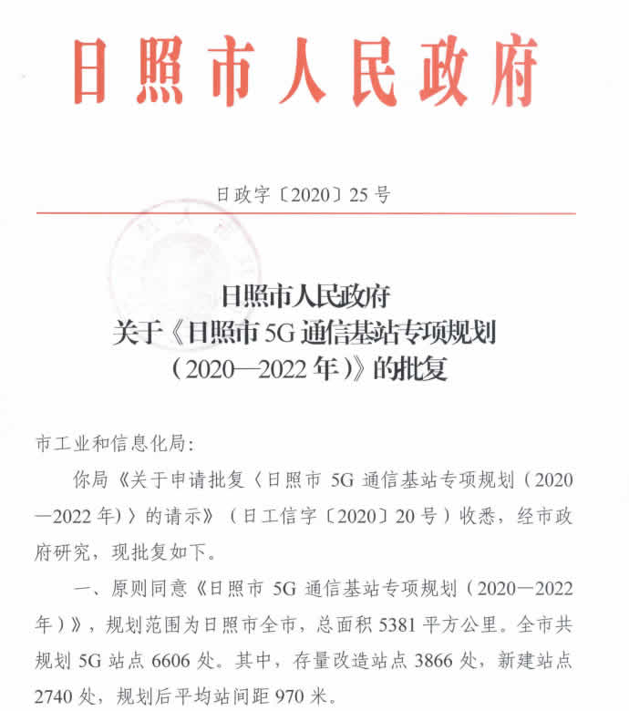《日照市5G通信基站專項(xiàng)規(guī)劃(2020-2022年)》