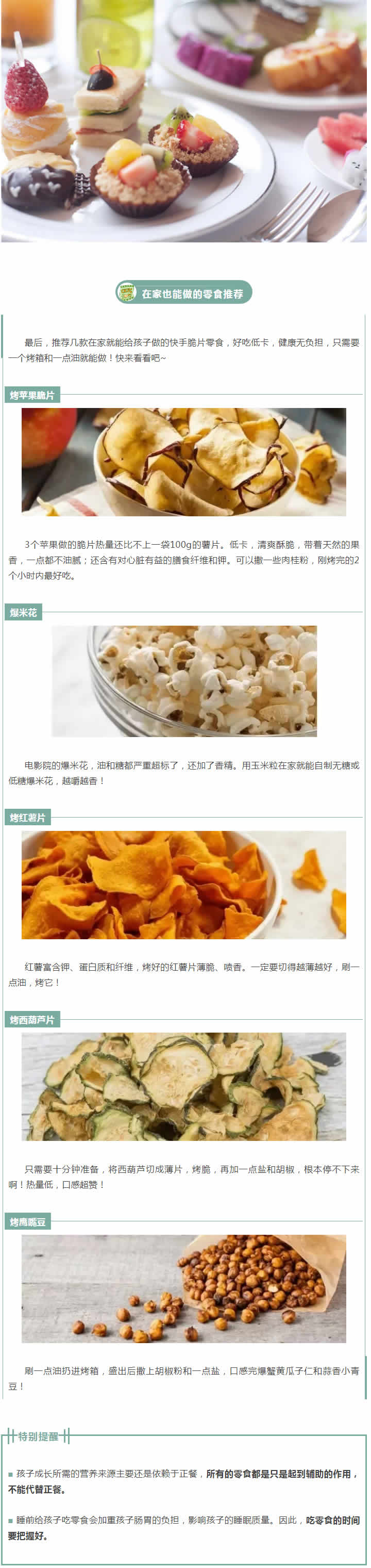 零食應(yīng)新鮮、多樣、易消化、營養(yǎng)、衛(wèi)生;