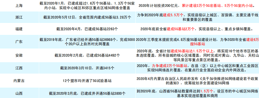 2020 年建設 5G 基站 5000 個以上;2022 年力爭建成 5G 基站 16000 個以上;到 2025 年,建成全省L先的 5G 應用示范城市