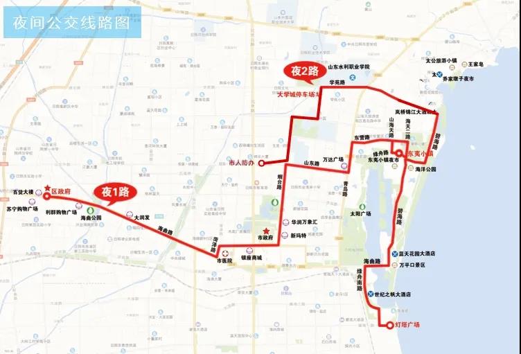 為助力夜間經(jīng)濟(jì)發(fā)展,進(jìn)一步滿足市民夜間出行需求,經(jīng)前期調(diào)研,擬于6月20日起試運(yùn)行由“東夷小鎮(zhèn)北”站經(jīng)東營路、青島路、山東路、煙臺(tái)路、泰安路、菏澤路、海曲路至“東港區(qū)政府”站的公交夜1路,由“市人防辦”站經(jīng)山東路、煙臺(tái)路、濱州路、學(xué)海路、學(xué)苑路、太公島二路、碧海路、海曲路、綠舟南路至“燈塔廣場”站的公交夜2路。具體情況如下: