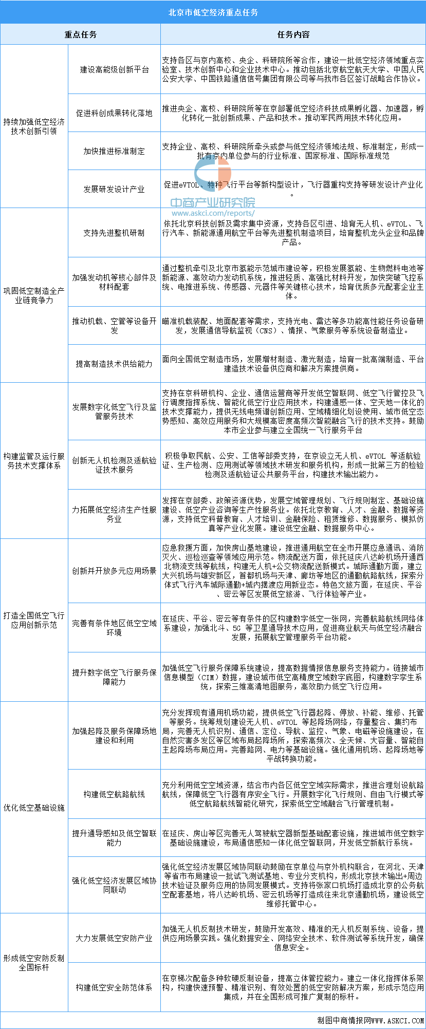 北京市低空經(jīng)濟(jì)重點(diǎn)任務(wù)