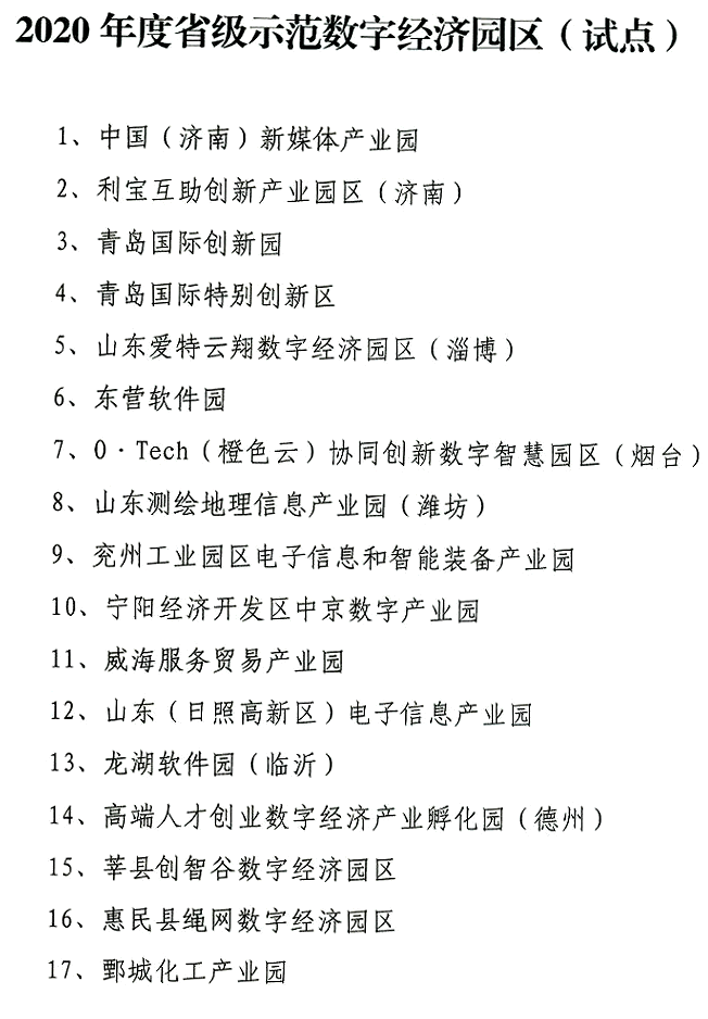 青島海爾云谷 滕州市大數(shù)據(jù)產(chǎn)業(yè)園 梁山經(jīng)濟(jì)開發(fā)區(qū) 博興縣數(shù)字經(jīng)濟(jì)園區(qū) 藍(lán)海L航大數(shù)據(jù)產(chǎn)業(yè)園 方達(dá)電子商務(wù)園 棗莊中展大數(shù)據(jù)產(chǎn)業(yè)園