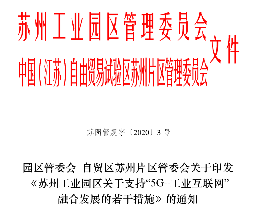 《蘇州工業(yè)園區(qū)關于支持“5G+工業(yè)互聯(lián)網(wǎng)”融合發(fā)展的若干措施》