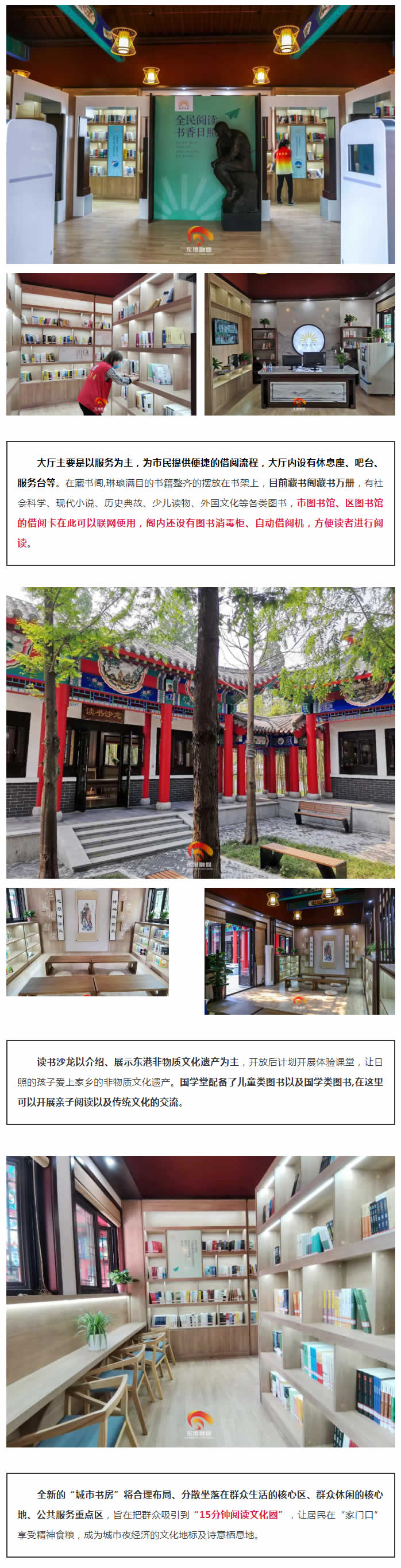 從城市書房的正門進(jìn)入,一眼就被城市書房的建筑造型所吸引。這里采用四合院院落布局設(shè)計(jì),建筑造型均采用古建筑的設(shè)計(jì)風(fēng)格,J具傳統(tǒng)特色。走入書房內(nèi)部,這里分為服務(wù)大廳、藏書閣、讀書沙龍、國學(xué)堂幾大區(qū)域,庭院中綠樹成蔭,設(shè)有座椅供市民休憩,營造出了濃濃的文化和藝術(shù)氛圍。