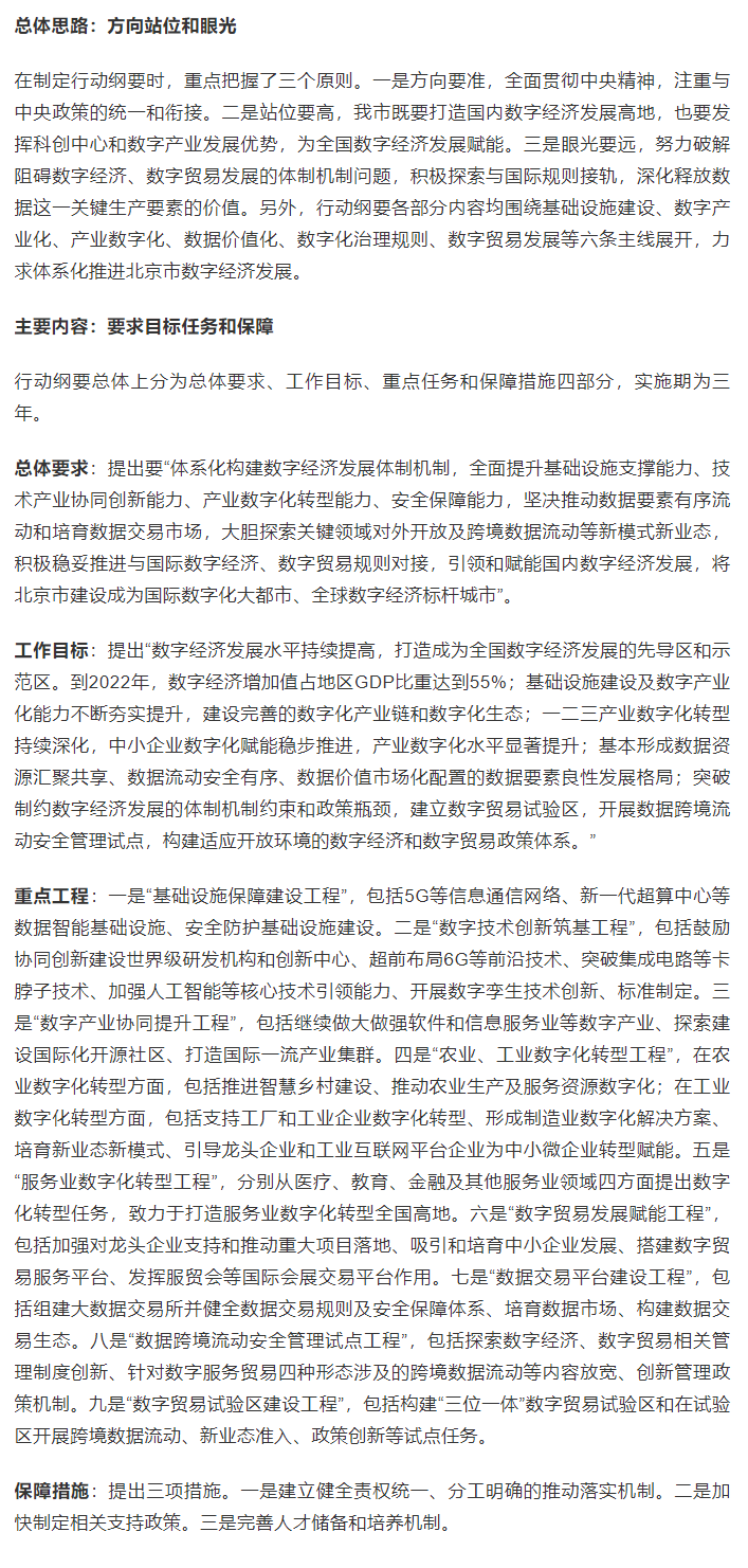 《北京市促進(jìn)數(shù)字經(jīng)濟(jì)創(chuàng)新發(fā)展行動(dòng)綱要(2020-2022年)》(以下簡稱《剛要》),經(jīng)北京市人民政府同意,相關(guān)部門于9月7日召開了新聞發(fā)布會正式予以發(fā)布。