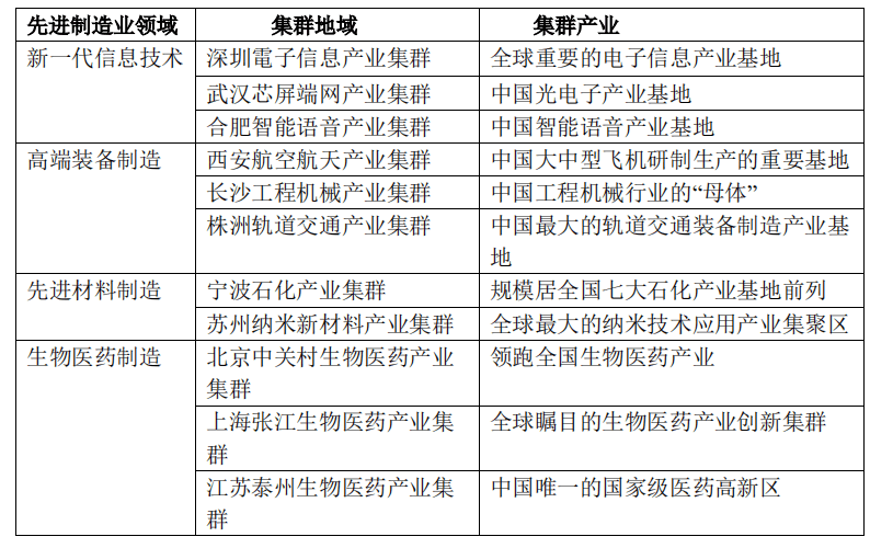 從發(fā)展現(xiàn)狀來看,伴隨我國(guó)先進(jìn)制造業(yè)產(chǎn)業(yè)園區(qū)和基地的建設(shè),具有聯(lián)動(dòng)效應(yīng)的產(chǎn)業(yè)已經(jīng)實(shí)現(xiàn)了地理位置上的聚集,基本建成具有一定規(guī)模和影響力的先進(jìn)制造業(yè)集群。這些產(chǎn)業(yè)集群主要