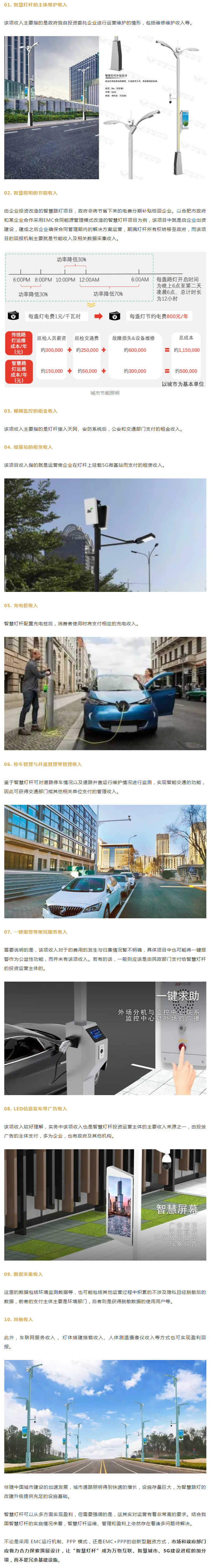 那么投資主體是怎么收回其G額的投資的呢?首先,要取決于產(chǎn)品本身的功能。從總體和長期范圍內(nèi)看,智慧燈桿將產(chǎn)生多項運營收入,如補貼、安裝、運維、搭載、廣告、能源、基站、數(shù)據(jù)等都將帶來收入。