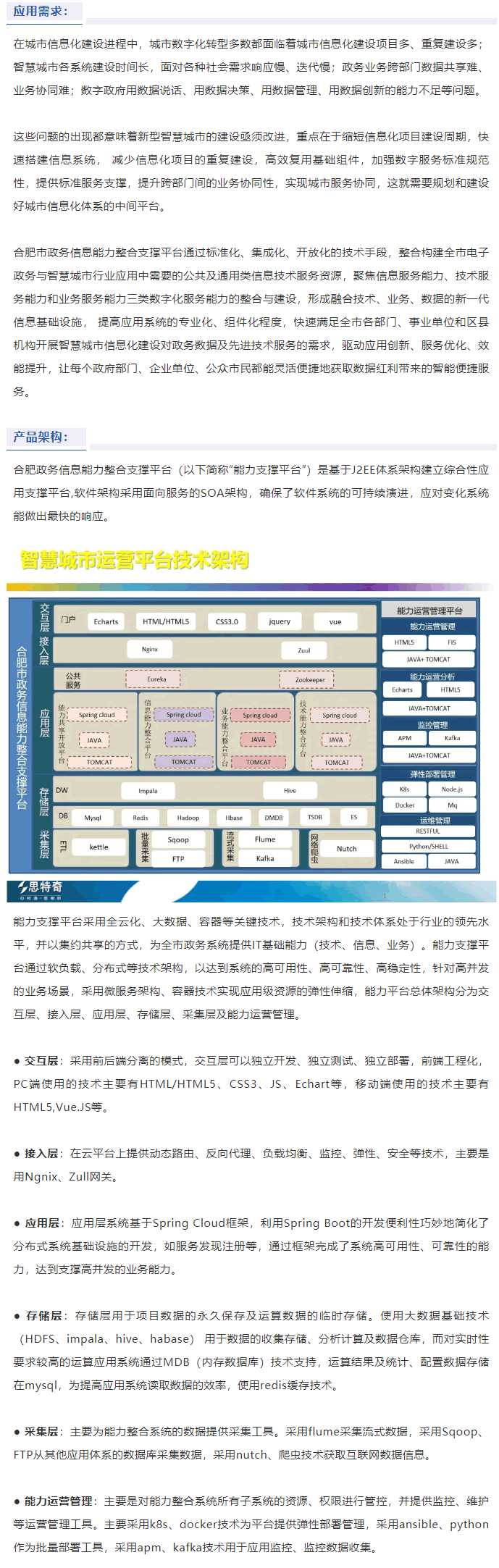 2、政務(wù)服務(wù)賦能。能力支撐平臺(tái)正在著力構(gòu)建包括信息能力、業(yè)務(wù)能力、技術(shù)能力在內(nèi)的2000多類(lèi)信息技術(shù)服務(wù)能力, 旨在為各城市管理者、城市居民、城市服務(wù)機(jī)構(gòu)提供惠民、強(qiáng)政、興業(yè)的服務(wù)應(yīng)用支撐。截至目前,能力支撐平臺(tái)累計(jì)能力調(diào)用總次數(shù)達(dá)460多萬(wàn)次,為不動(dòng)產(chǎn)登記、數(shù)字蜀山、住房保障、合肥通等重大專(zhuān)項(xiàng)應(yīng)用提供24小時(shí)不間斷業(yè)務(wù)賦能。助力加快推進(jìn)政務(wù)信息技術(shù)資源整合與共享應(yīng)用,助力初步實(shí)現(xiàn)全市基礎(chǔ)信息服務(wù)資源一體化管理格局,大大減少城市服務(wù)申請(qǐng)及辦理的時(shí)間、精力、物力和人力成本,跑腿次數(shù)減少了, 提交材料減少了,辦事時(shí)間縮短了,大大提升了城市服務(wù)滿(mǎn)意度和獲得感。
