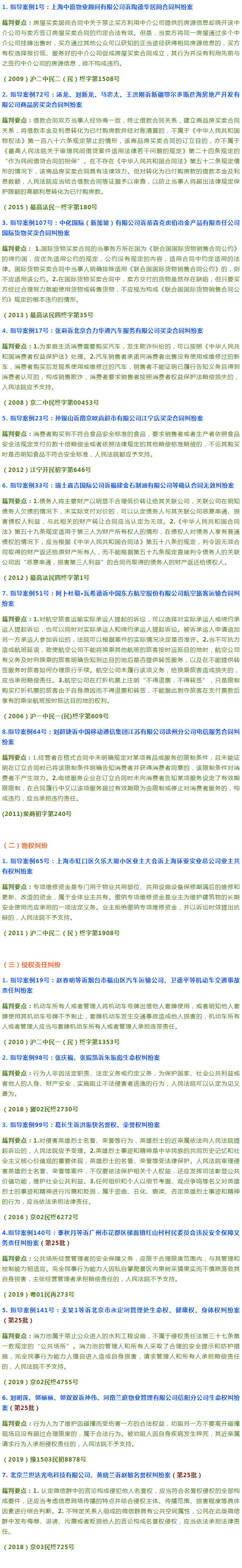 為方便法律同仁G效地學(xué)習(xí)了解,小編特將143件指導(dǎo)性案例中的民商事案例篩選出來,并按民事類(包括環(huán)境民事公益訴訟)、商事類、程序類(包括執(zhí)行)歸類,每一類再按照案由進(jìn)行更加細(xì)致的分類,同時(shí)將案例對(duì)應(yīng)的案號(hào)附后,便于進(jìn)一步的查閱