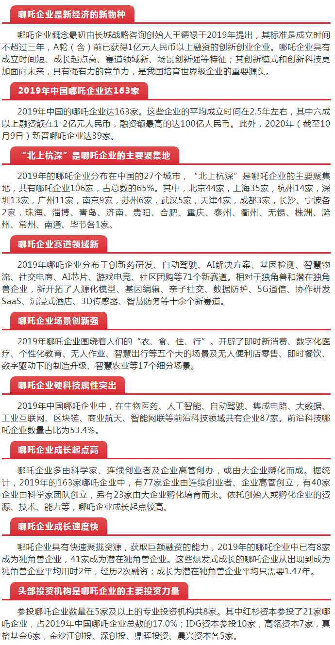 2019年中國(guó)的哪吒企業(yè)達(dá)163家。這些企業(yè)的平均成立時(shí)間在2.5年左右,其中六成以上融資額在1-2億元人民幣,融資額G的達(dá)100億人民幣