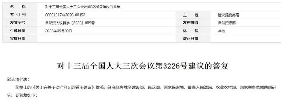 此外,答復就“關于不動產共有登記”等問題也做了明確回復。答復指出,不動產登記機構以少數(shù)份額共有人不配合而不予辦理登記的問題,屬于執(zhí)行層面的問題,將加強監(jiān)督指導,嚴格落實法律規(guī)定,切實維護不動產權利人合法權益。