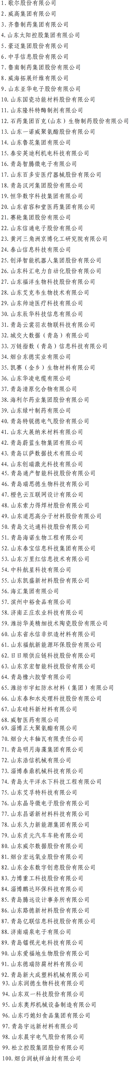 山東魏橋,南山集團,東明石化,日照鋼鐵,利華益集團,萬達控股集團,永鋒集團,華泰集團,青建集團,山東京博控股集團,山東海科控股,天元建設