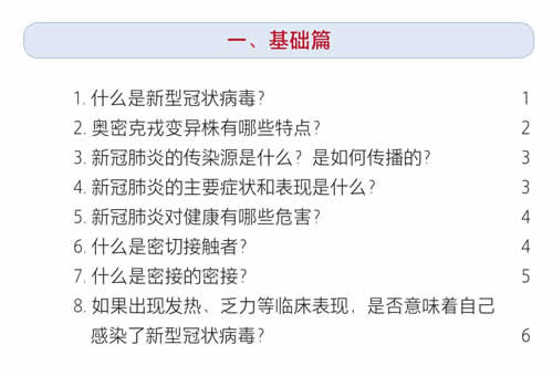電子書涉及市民關心的100個問題,涵蓋病毒知識、個人防護、疫苗接種、病毒檢測、清潔消毒、食品安全、科學鍛煉、心理調適、健康管理、出行防護、中醫(yī)藥防治、居家隔離醫(yī)學觀察等防疫要點,從新G病毒的基礎知識到病毒檢測的不同方法,從居家清潔的細節(jié)要點到預防消毒的注意事項,從日常起居的方方面面到調適身心的點點滴滴。