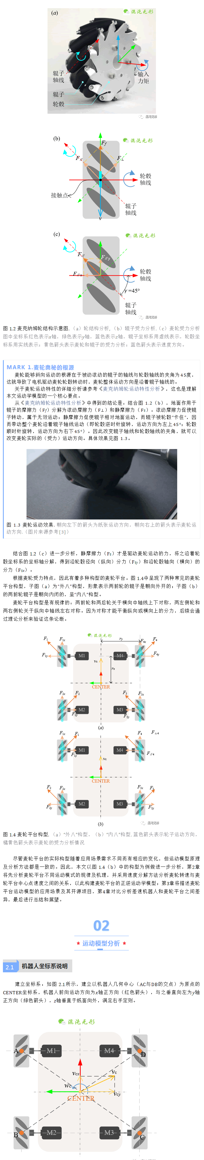 從運(yùn)動空間分類,輪式移動機(jī)器人可分為非全向移動類型和全向移動類型。在之前的系列文章中已經(jīng)介紹了兩輪差速機(jī)器人、car-like robot、四輪驅(qū)動(SSMR)機(jī)器人及履帶式機(jī)器人,這都屬于非全向(差速驅(qū)動)移動機(jī)器人的范疇,而本文將介紹全向移動機(jī)器人中的一款——基于麥克納姆輪的全向移動機(jī)器人(下文簡稱為麥輪平臺)。