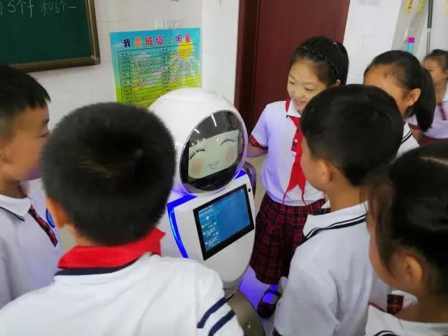 智能交互機器人正在課堂上與學生們互動呢,這是課堂互動現(xiàn)場...