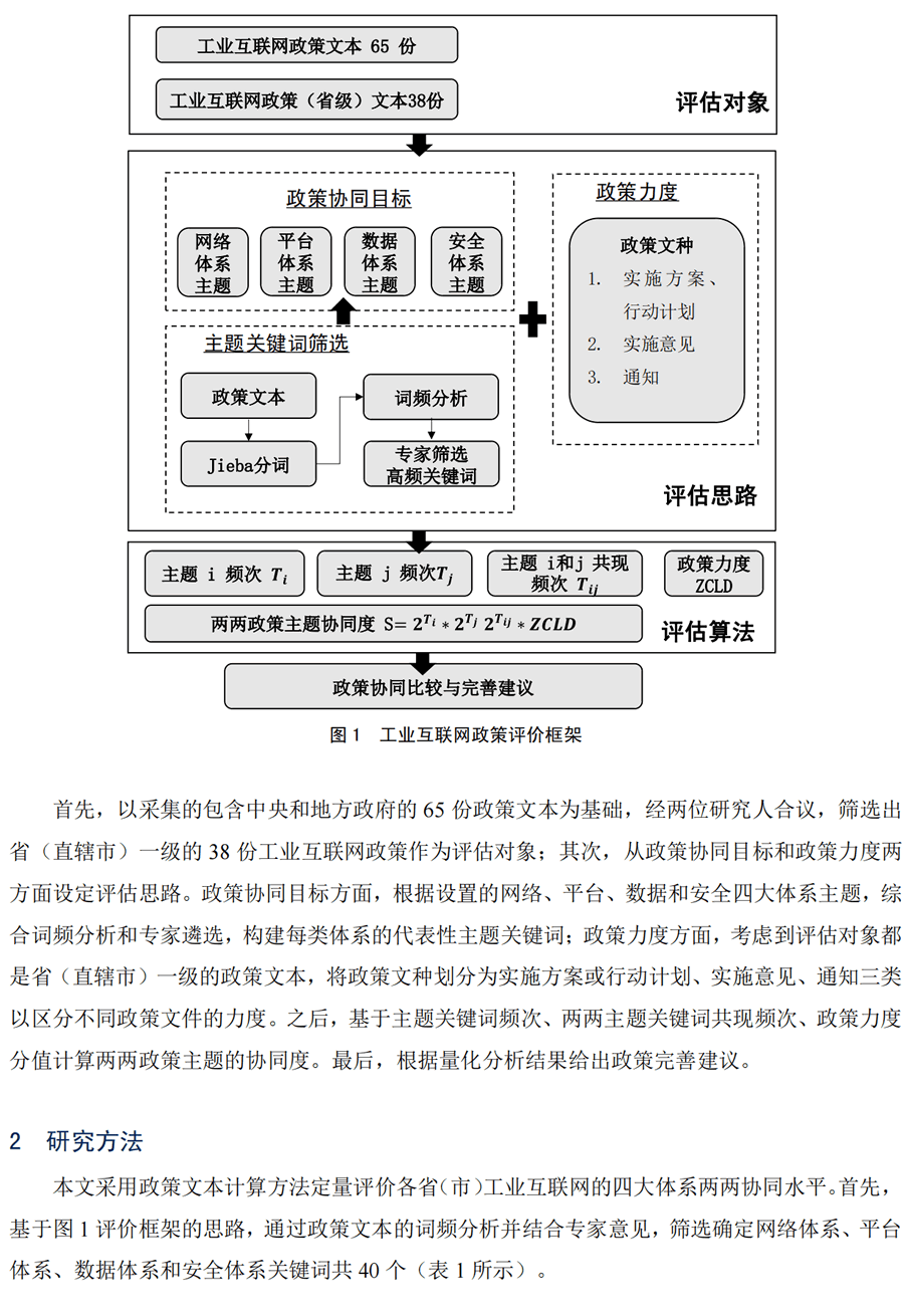 關(guān)鍵詞:工業(yè)互聯(lián)網(wǎng);工業(yè)互聯(lián)網(wǎng)體系;協(xié)同研究;政策文本計(jì)算
